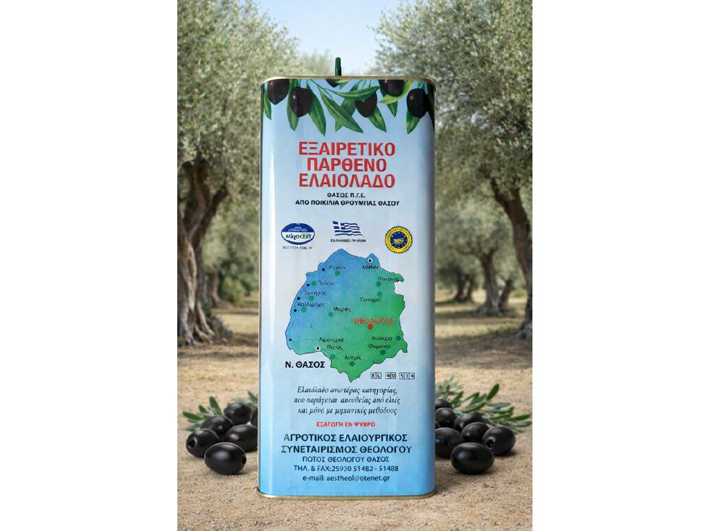 Tradičný grécky extra panenský olivový olej pochádzajúci priamo z ostrova Thassos, vyrobený z miestnej odrody olív Throumpa Thassou. Tento olej je výsledkom dlhoročnej olivárskej tradície ostrova, kde sa olivy pestujú v ideálnych podmienkach – horský terén, slnečné podnebie a blízkosť mora.
